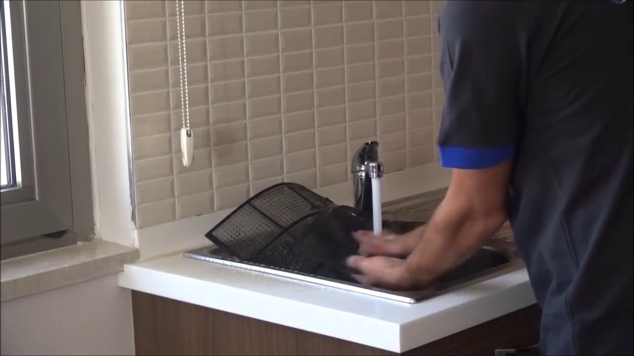 Başlangıçta ön panel kapağını açıp altındaki ki adet filtreyi çıkarıp suyun altında güzelce yıkayıp temizlemeniz gerekiyor. Daha detaylı temizlik için içerisinde bulunan serpantin adı verilen alüminyum saç panelin aralıkları temizlenmelidir bunun için ön panelin kasa ön parçası komple sökülmelidir bu işlem için ise teknik servisten yardım almanız önerilmektedir.Temizlenen filtreleri kurulamadan yerine takmayınız ve ağır koku barındıran temizlik malzemeleriyle temizlemeyiniz.